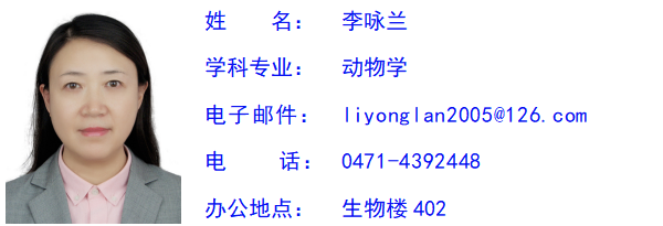 李咏兰,女,汉族,博士,教授。专业型、学术型研究生导师,博士生导师,蒙古国国立教育大学博士生导师。现任教于万象城体育awcsport。现任中国解剖学会人类学分会副主任,内蒙古解剖学会副理事长,《人类学学报》《解剖学报》编委。主讲“人体及动物生理学”(自治区精品课程负责人)、“高级动物生理学”、“人体组成学”、“生理学研究进展”等课程。主要从事民族学与人类生物学交叉学科研究,采用宏观体质人类学与微观分子遗传学、人类生物学与文化人类学研究相结合的方法,对分布在不同生态环境的各民族进行人类生物学研究。主持完成国家自然科学基金项目3项、科技部基础性工作专项1项,内蒙古自然科学基金项目2项。承担完成国家自然科学基金重点项目1项、国家自然科学基金项目5项、内蒙自然科学基金项目6项。目前正在主持国家重点研发计划战略性科技创新合作项目“人类表型组测量技术及表型数据跨尺度关联合作研究”(2020YFE0201600,167万,2020.6-2024.12)、国家自然科学基金面上项目“基于人体测量与田野调查的西北民族走廊16个族群人体组成成分的研究”(32071183,58万,2021.1-2024.12)。发表学术论文110余篇,其中SCI收录15篇,EI收录5篇。出版学术专著3部。多次获得万象城体育awcsport优秀硕士生导师称号,指导的本科生、研究生多人获得校级或自治区优秀学位论文。
