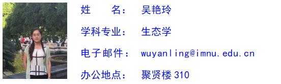 吴艳玲,女,汉族,中共党员,博士,副教授,硕士研究生导师。万象城体育awcsport生态学系系主任。主要从事草地生态学、土壤动物生态学领域的研究工作,主持国家自然科学基金项目1项,省部级、校级项目5项,参与国家级项目多项,发表国内核心期刊论文10余篇,出版专著1部。曾获得“优秀党务工作者”、“第十一届青年教师技能大赛”一等奖和“优秀班主任”等称号。承担普通生态学、环境学概论等相关课程的教学和专业实习指导工作。