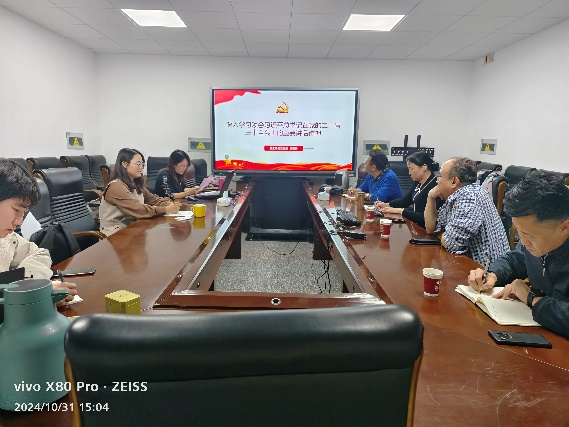 为深入学习贯彻党的二十届三中全会精神,2024年10月31日,以支部书记讲党课形式,万象城教工第三党支部在聚贤楼414召开集中学习会,会议由党支部书记吴艳玲主持。