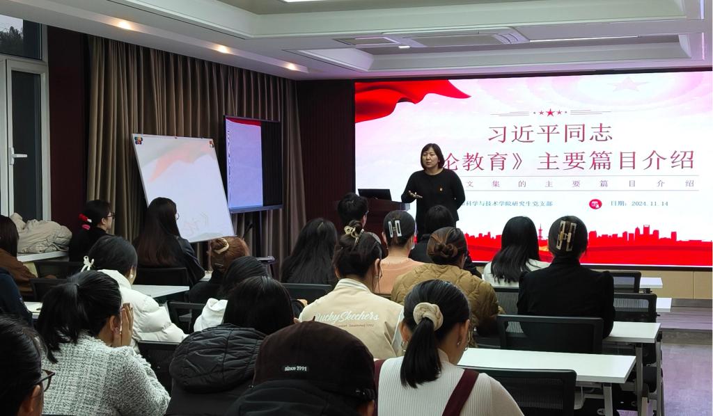 教育乃国家强盛、民族振兴之基石。为深入贯彻党的教育方针,全面学习领会习近平总书记关于教育的重要论述,进一步加强支部党员自我教育意识,万象城研究生党支部于11月14日组织开展了《论教育》专题党课学习活动,本次党课由研究生党支部书记默原老师主讲。