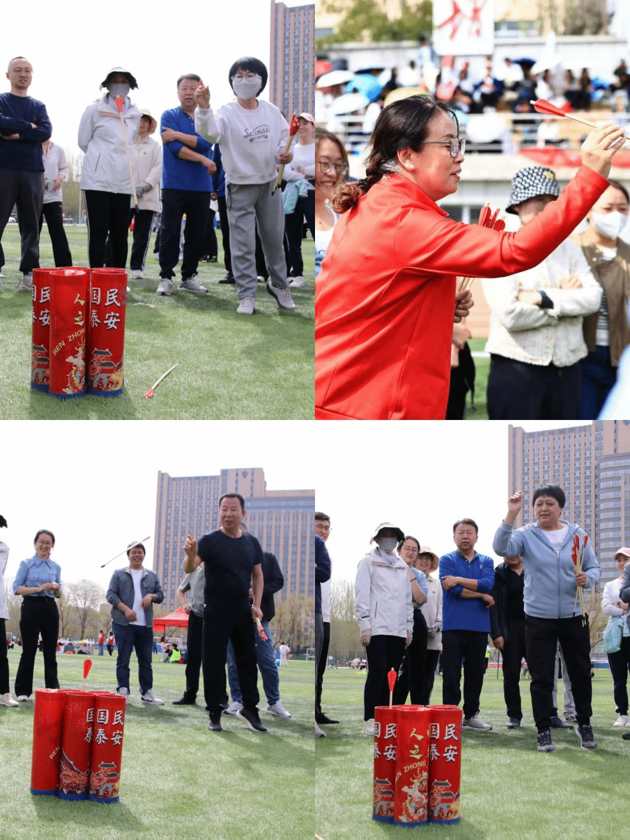 投壶雅戏发掘了投掷的无穷乐趣,大家沉浸在这场充满古韵与趣味的活动中。每位选手依次上场,每次投掷一支“箭矢”,共进行 10 轮投掷,大家轮流出手,毛笔“箭矢”在空中划出一道道优美的弧线,每一次投掷都凝聚着专注与期待。投壶雅戏在师生趣味运动会上不仅是一场充满趣味的竞技活动,更是一种文化传承与教育实践。它通过传统与现代的结合,让师生在轻松愉快的氛围中感受中华文化的魅力。