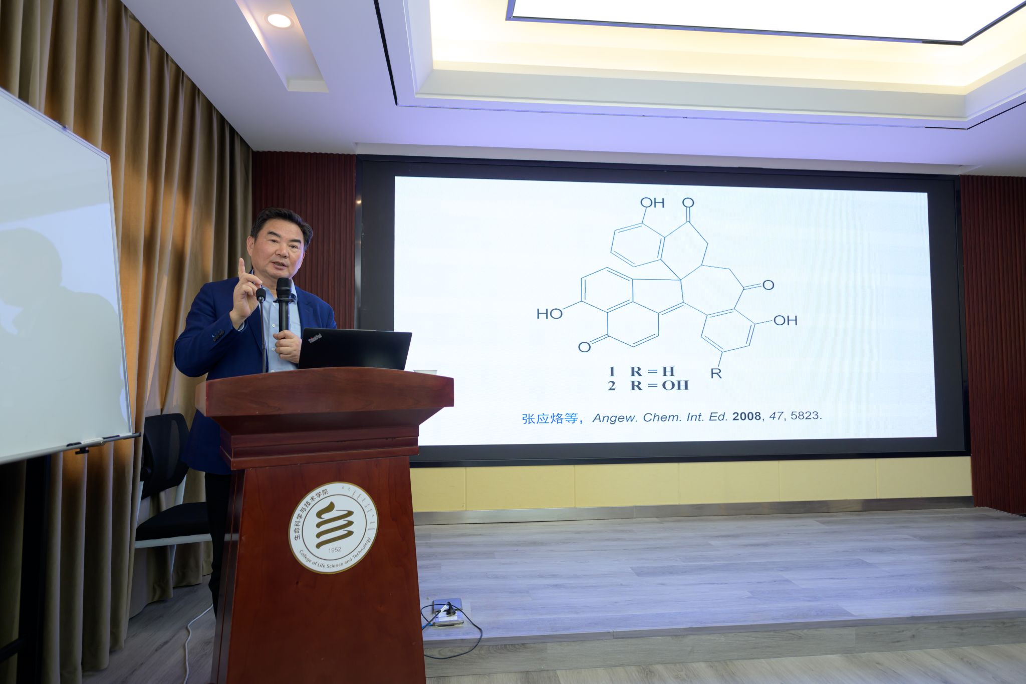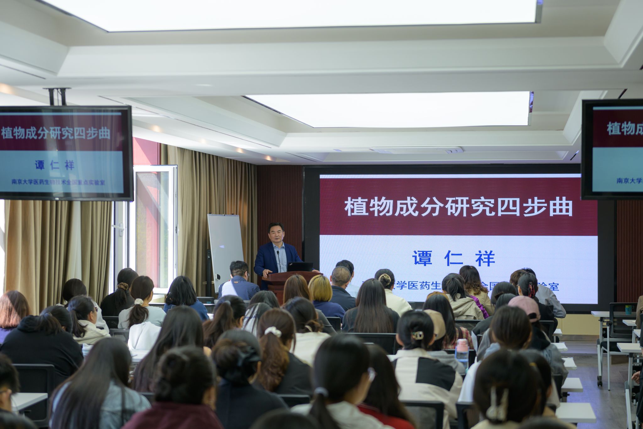 4月27日上午,中国植物学会副理事长、南京大学医药生物技术全国重点实验室主任、国家杰出青年科学基金获得者、长江学者谭仁祥教授应内蒙古自治区植物学会和万象城体育awcsport邀请,为万象城师生作了题为“植物成分研究四步曲”的学术报告。学院党委副书记院长红雨、内蒙古自治区植物学会理事长徐杰、秘书长杜超、内蒙古自治区昆虫学会理事长白晓拴及万象城100余名师生参加报告会。报告会由学院党委副书记、副院长高峰主持。