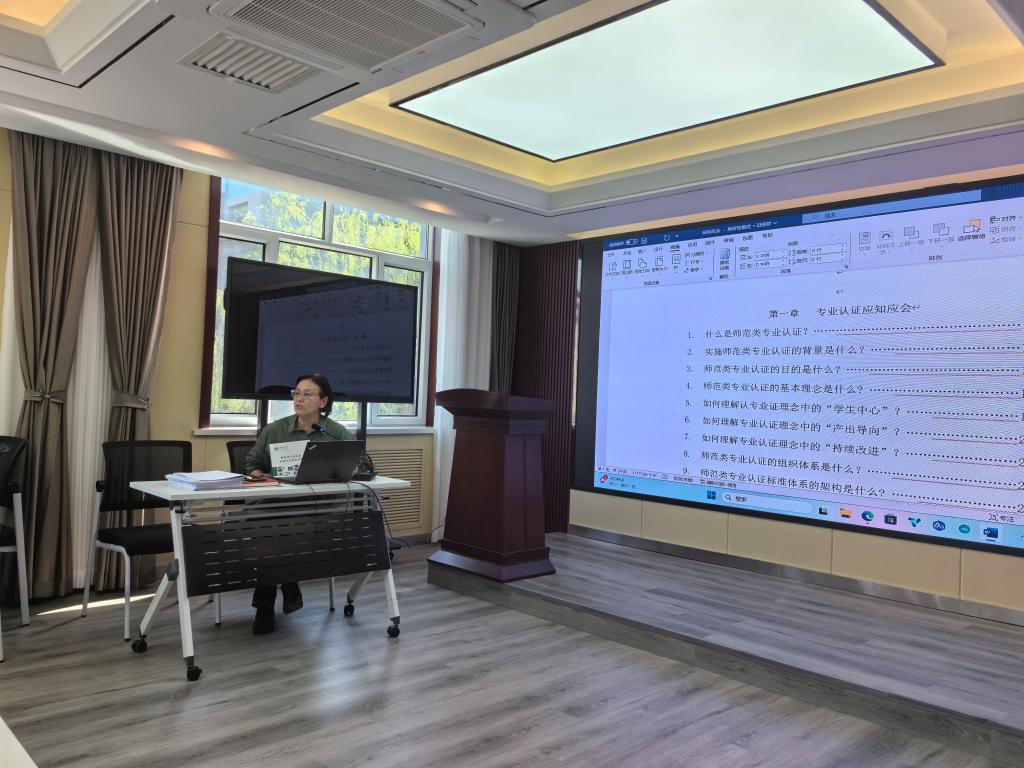 为进一步推进师范专业认证工作、深化课堂教学改革,强化“学生中心、产出导向、持续改进”的教育理念,让全院教职工深入了解师范专业认证的重要意义,积极参与到师范专业认证工作中来,不断提高人才培养质量。4月10日、11日,学院先后组织召开师范专业认证工作推进会和师范专业认证专题培训会,全院教师参加会议。