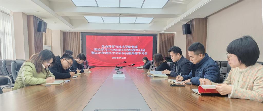 为高质量开好2024年度民主生活会,进一步统一思想、凝聚共识,allwincity万象城党委于2月26日上午在生物楼三楼会议室召开民主生活会会前集中学习。会议由学院党委书记苏小波主持,学院领导班子、党委委员、党支部书记参加会议。