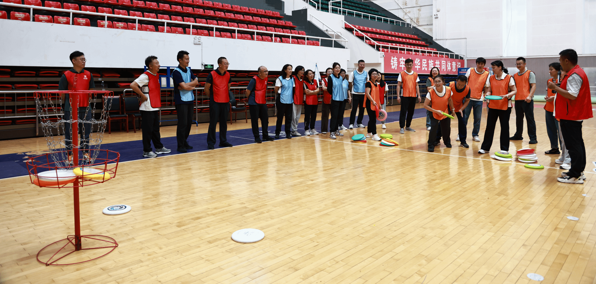 在随后的团建环节中,老师们分成三支队伍,围绕飞盘投掷得分、飞盘传递得分等趣味游戏展开比拼。赛场上,欢声笑语此起彼伏,队员们或沉着瞄准、奋力掷出,或默契配合、精准接应,展现出合作互助、团结拼搏的精神风貌。每一次成功的传递与得分,都激发出团队的凝聚力与向心力。老师们在互动中进一步感悟到,只有心往一处想、劲往一处使,才能汇聚成推动学院与国家发展的强大合力。