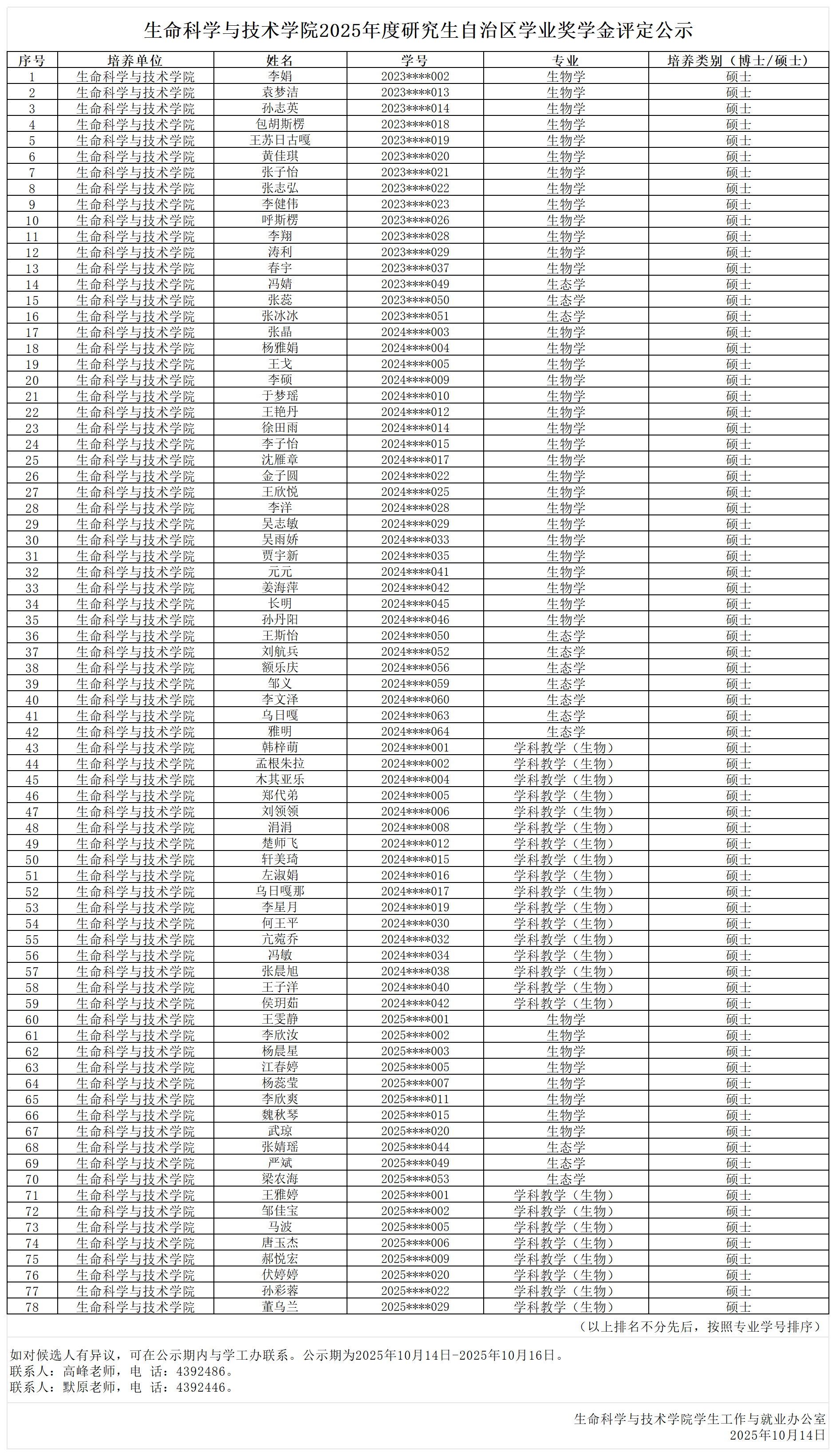 allwincity万象城2025年度研究生自治区学业奖学金评定公示