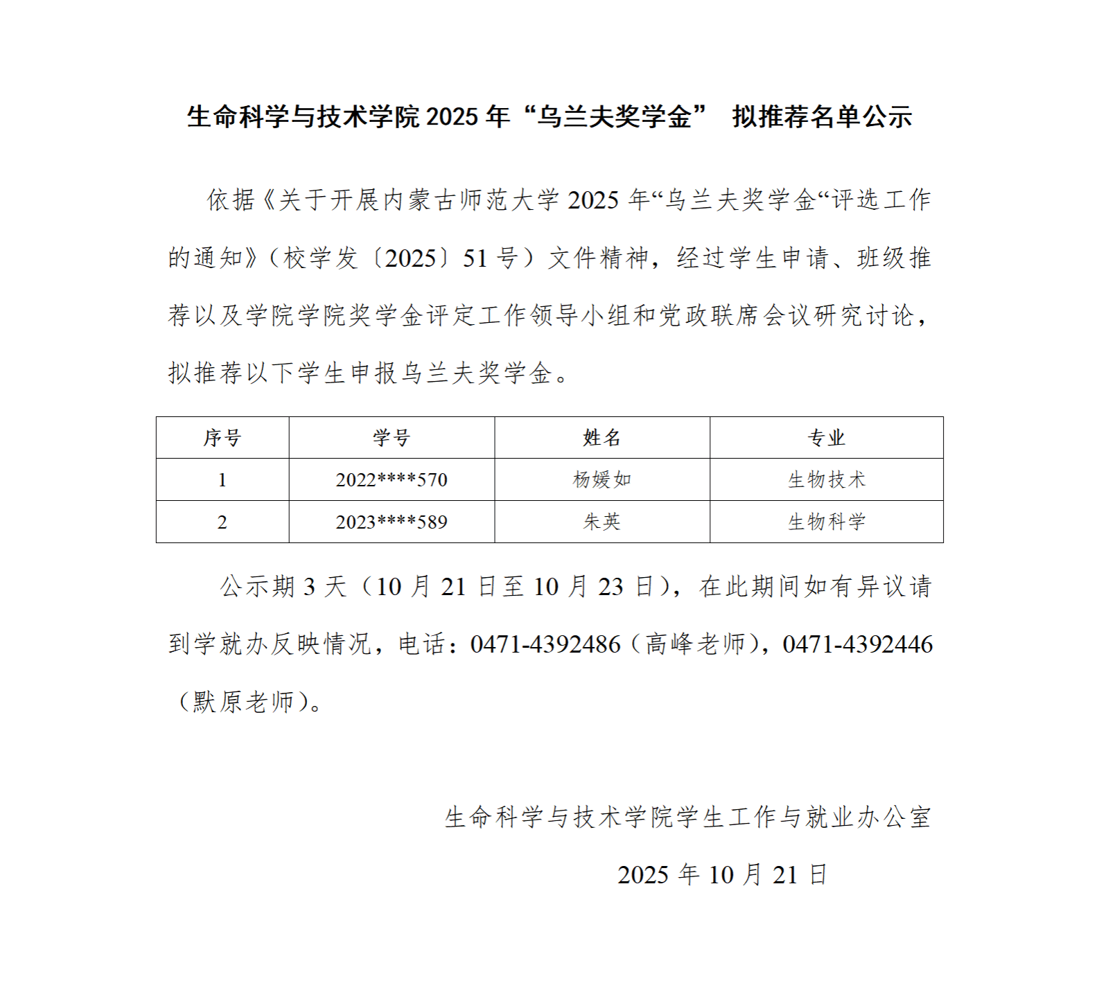 allwincity万象城2025年“乌兰夫奖学金”拟推荐名单公示